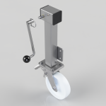 Side winding jacking unit (removable handle) with maximum lift of 200mm fitted with a Fabricated swivel castor with a top plate fixing fitted with a white nylon wheel with a plain bore and total lock brake. Wheel diameter 200mm, tread width 50mm, maximum Load for the complete unit is capacity 1000kg. Please note Jacking castors are rated on a different principal to other castors and we recommend the total lifted load is divided over just 2 jacking units. for other dimensions please refer to the BIL catalogue or request a drawing.when jacked up to the height please be aware of any obstacles as a sudden shock could result in the inner square tube bending around the outer tube. DO NOT OVERWIND Handle excessively more than what is needed as this will cause the pin in the gearbox to shear.