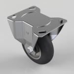Pressed steel fixed castor with a top plate fixing with a black ergonomic high elastic natural 55 shore A round profile rubber tyred wheel with a aluminium centre with ball bearings. Wheel diameter 125mm, tread width 40mm, overall height 156mm, top plate 135mm x 110mm, hole centres 105mm x 80mm or 116mm x 63.5mm. Load capacity 150kg. REACH compliant also PAH-Free rubber to confirm to EU-directive 2005/69/EC,