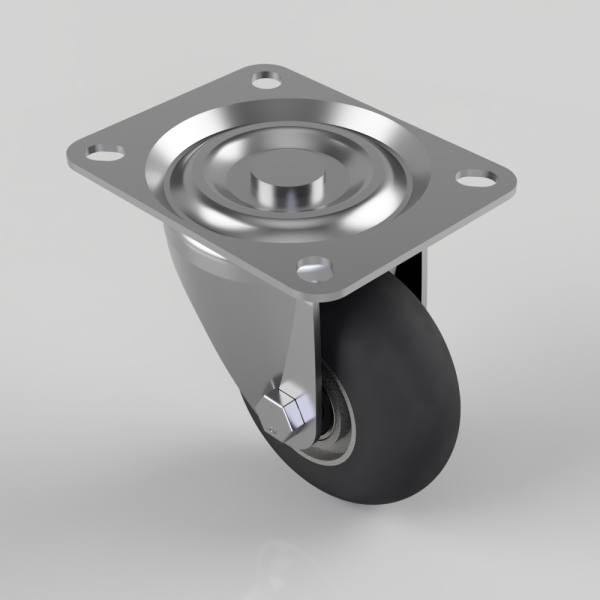Pressed steel swivel castor with a top plate fixing fitted with an ergonomic black high elastic natural 55 shore A rubber tyre aluminium centred wheel with ball bearings. Wheel diameter 100mm, tread width 40mm, overall height 127mm, top plate 130mm x 103mm, hole centres 105mm x 80mm or 100mm x 76mm Load capacity 150kg REACH compliant also PAH-Free rubber to confirm to EU-directive 2005/69/EC