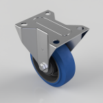 0Blue Elastic Rubber 65ShoreA Plate Fixed Castor 100mm 180kg Load