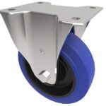 Blue Elastic Rubber 65ShoreA Plate Fixed Castor 160mm 350kg Load