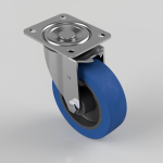 0Blue Elastic Rubber 65ShoreA Plate Swivel Castor 125mm 250kg Load