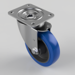 1Blue Elastic Rubber 65ShoreA Plate Swivel Castor 150mm 300kg Load