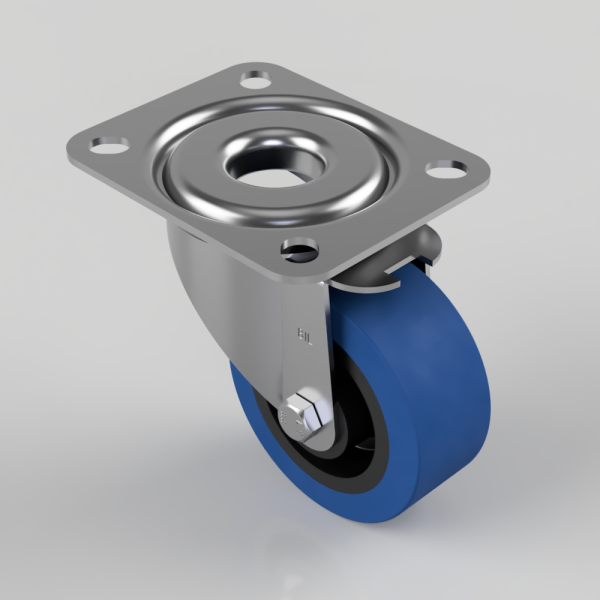 3Blue Elastic Rubber 65ShoreA Plate Swivel Castor 80mm 150kg Load