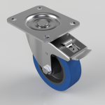 0Blue Elastic Rubber 65ShoreA Plate Swivel Castor Brake 125mm 250kg Load