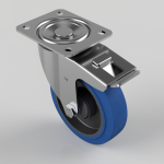 3Blue Elastic Rubber 65ShoreA Plate Swivel Castor Brake 125mm 250kg Load