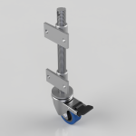 Open screw thread jacking castor with side fitting nuts with 160mm lift fitted with a 80mm white zinc plated swivel pressed steel castor with a 65 shore A blue elastic rubber tyred black nylon centred wheel with a roller bearing and total lock brake with a load capacity of 150kg Please note Jacking castors are rated on a different principal to other castors and we recommend the total lifted load is divided over just 2 jacking units.1 extra safety point is when jacked up please beware of any obstacles as a sudden shock could result in bending the thread but more likely the castor will tear away from the screw thread also this could also happen if the user forgets to release the brake. Please refer to the BIL catalogue or request a drawing. REACH compliant also PAH-Free rubber to confirm to EU-directive 2005/69/EC