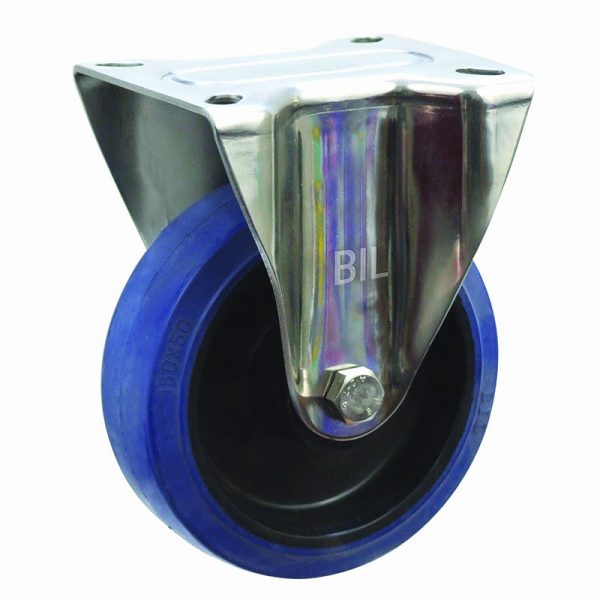 0Blue Elastic Rubber 75ShoreA Plate Fixed Castor 160mm 300kg Load