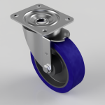 0Blue Elastic Rubber 75ShoreA Plate Swivel Castor 160mm 300kg Load