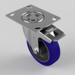 1Blue Elastic Rubber 75ShoreA Plate Swivel Castor Brake 125mm 250kg Load