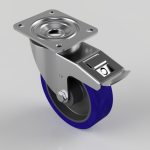 14Blue Elastic Rubber 75ShoreA Plate Swivel Castor Brake 160mm 300kg Load