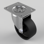 Pressed steel swivel castor with a top plate fixing fitted with a cast iron wheel with Plain Bore. Wheel diameter 125mm, tread width 50mm, overall height 166mm, top plate 135mm x 110mm, hole centres 105mm x 80/75mm. Load capacity 500kg.