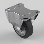 Pressed steel fixed castor with a top plate fixing with a black elastic rubber tyred wheel with a aluminium centre with ball bearing. Wheel diameter 125mm, tread width 40mm, overall height 156mm, top plate 135mm x 110mm, hole centres 105mm x 80mm or 116mm x 63.5mm. Load capacity 250kg. REACH compliant also PAH-Free rubber to confirm to EU-directive 2005/69/EC