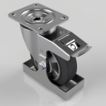 Pressed steel swivel castor with a top plate fixing fitted with a black high elastic natural 65 shore A rubber tyred wheel aluminium centre with ball bearings, total lock brake and footguard. Wheel diameter 150mm, tread width 50mm, overall height 190mm, top plate 135mm x 110mm, hole centres 105mm x 80/75mm. Load capacity 350kg. REACH compliant also PAH-Free rubber to confirm to EU-directive 2005/69/EC