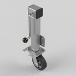 Side winding jacking unit with maximum lift of 200mm fitted with a Fabricated swivel castor with a top plate fixing fitted with a black 65 shore A elastic rubber tyre aluminium centred wheel with ball bearing and total lock brake. Wheel diameter 150mm, tread width 50mm, maximum Load for the complete unit is capacity 350kg. Please note Jacking castors are rated on a different principal to other castors and we recommend the total lifted load is divided over just 2 jacking units. for other dimensions please refer to the BIL catalogue or request a drawing. When jacked up to the height please be aware of any obstacles as a sudden shock could result in the inner square tube bending around the outer tube. DO NOT OVERWIND Handle excessively more than what is needed as this will cause the pin in the gearbox to shear.