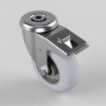 Pressed steel swivel castor with a 12mm bolt hole fixing with a grey ergonomic high elastic natural 55 shore A round profile rubber tyred wheel with an aluminium centre with a ball bearing and a total lock brake. Wheel diameter 125mm, tread width 40mm, overall height 156mm, Load capacity 200kg. REACH compliant also PAH-Free rubber to confirm to EU-directive 2005/69/EC,