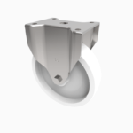Pressed steel fixed castor with a top plate fixing fitted with a white nylon wheel with a roller bearing. Wheel diameter 200mm, tread width 50mm, top plate 135mm x 115mm, hole centres 105mm x 80/75mm. Load capacity 700kg.