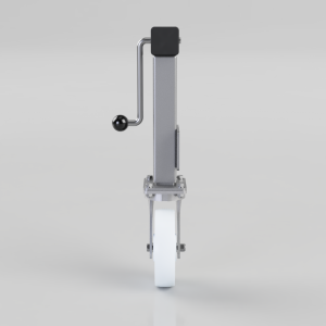 Side winding jacking unit with maximum lift of 200mm fitted with a Fabricated swivel castor with a top plate fixing fitted with a white nylon wheel with a ball bearing. Wheel diameter 2000mm, tread width 50mm, maximum Load for the complete unit is capacity 1000kg. Please note Jacking castors are rated on a different principal to other castors and we recommend the total lifted load is divided over just 2 jacking units. for other dimensions please refer to the BIL catalogue or request a drawing. when jacked up to the height please be aware of any obstacles as a sudden shock could result in the inner square tube bending around the outer tube. DO NOT OVERWIND Handle excessively more than what is needed as this will cause the pin in the gearbox to shear.