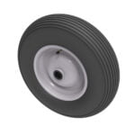 Black pneumatic tyred grey steel disc centred wheel with a roller bearing bore (sorry no grease nipple). Fitted with a 4 ply ribbed tread patterned tyre. Wheel diameter 400mm, tread width 100mm, hub 75mm, bore 25mm. Load capacity 300kg for non-towing applications. REACH Compliant. Please note we manufacture to order and therefore a 24 hour delivery may not be possible Maximum SWL are quoted according to speed: higher speed will reduce SWL. Load capacities recorded on tyre walls represent manufacturers recommended maximum load at 10 KPH, whilst higher SWL figures stated within our catalogue are based upon 4kph maximum speeds. Refer to our catalogue for SWL if the wheel is never to be used at over 4kph rather than the figure recorded on the tyre. Always check the intended application and base the required SWL capacity according to speed rating. If you have any doubts then please contact BIL before using these wheels. Please note these wheels are not suitable for foam filling as standard. Please ask about an upgrade using our Butyl inner tubes to suit this purpose or otherwise consider our puncture proof range of wheels.