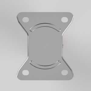 Pressed steel fixed castor with a top plate fixing fitted with a red polyurethane tyre on white nylon centred wheel with a plain bore. Wheel diameter 100mm, tread width 33mm, overall height 132mm, top plate 135mm x 115mm, hole centres 105mm x 80/75mm. Load capacity 250kg.