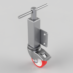 Zinc plated box jacking unit with side fitting plate and a 75mm lift fitted with a 100mm red polyurethane tyre nylon centred roller bearing wheel and a total lock brake with a load capacity of 250kg Please note Jacking castors are rated on a different principal to other castors and we recommend the total lifted load is divided over just 2 jacking units.1 extra safety point is when jacked up please beware of any obstacles as a sudden shock could result in the inner square tube bending around the outer tube and this can also happen if the user forgets to take the brake off. Please refer to the BIL catalogue or request a drawing