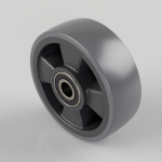 Grey polyurethane on nylon centred wheel with a ball bearing. Wheel diameter 150mm, tread width 50mm, bore size 20mm, hub length 55mm. Load capacity 500kg.