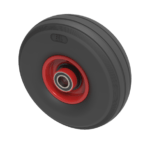 Black ribbed pattern puncture proof tyre red steel centred wheel with ball bearings. Diameter 260mm, tread width 85mm, bore size 25.4mm, hub length 65mm. Load capacity 100kg.for non towing applications. REACH Compliant.
