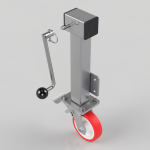 Side winding jacking unit ( removable handle ) with maximum lift of 200mm fitted with a fabricated swivel castor with a top plate fixing fitted with a red polyurethane tyre on a white nylon centred wheel with roller bearing bore and a total lock brake. Wheel diameter 150mm, tread width 40mm, maximum Load for the complete unit is capacity 500kg.Please note Jacking castors are rated on a different principal to other castors and we recommend the total lifted load is divided over just 2 jacking units. For other dimensions please refer to the BIL catalogue or request a drawing. When jacked up to the height please be aware of any obstacles as a sudden shock could result in the inner square tube bending around the outer tube. Please note BIL do not recommend brakes on jacking castors. DO NOT OVERWIND Handle excessively more than what is needed as this will cause the pin in the gearbox to shear.