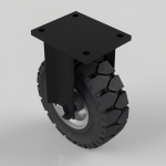 Fabricated black painted swivel castor plate fixing fitted with a black elastic rubber tyred on a steel disc centred wheel with ball bearings, Wheel diameter 250mm, tread width 84mm, overall height 305mm, plate size 175mm x 140mm, hole centres 140mm x 105mm. Load capacity 450kg at 4kph, 200kg at 16kph