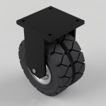 Fabricated black painted fixed castor plate fixing fitted with a black elastic rubber tyred on a steel disc centred wheel with ball bearings, Wheel diameter 2 x 457mm, tread width 2 x 122mm, overall height 560mm, plate size 315mm x 315mm, hole centres 250mm x 250mm. Load capacity 2800kg at 4kph and 1260kg at 16kph. **MANUFACTURED TO ORDER**