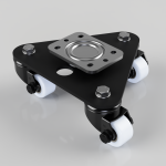 Central medium duty white zinc plated swivel head, mounted on a black painted triangular base plate fitted with 3 pressed steel black painted swivel castors fitted with 50mm white nylon wheels with ball bearings. Overall height 99mm, Mounting Plate size 116 x 86mm, hole centres 80 x 60mm, Load capacity 300kg.