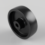 Black thermoplastic wheel with plain bearing. Diameter 100mm, tread width 30mm, bore size 12mm, hub length 40mm load capacity 250kg at 300c.