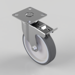 1Thermoplastic Rubber on Polypropylene Plate Swivel Castor Brake 125mm 100kg Load
